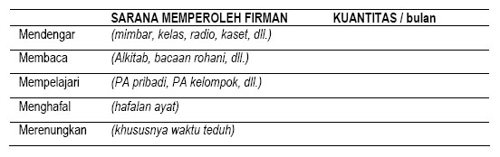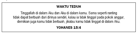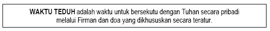 Lakukanlah waktu teduh setiap hari dengan menggunakan bahan penuntun renungan harian yang telah disediakan.