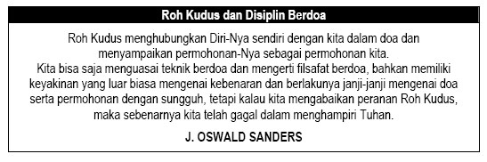 Waktu pribadi bersama Tuhan . . . dimulai dengan menyediakan waktu dan tempat bagi Tuhan, dan hanya Tuhan saja. Jika kita sungguh meyakini bahwa Tuhan bukan saja ada, tetapi Dia juga hadir secara aktif dalam hidup kita—menyembuhkan, mengajar, dan membimbing—kita perlu menyediakan waktu dan tempat di mana kita dapat memberikan perhatian kita pada Tuhan dengan tidak terpecah. (HENRY J.M. NOUWEN)