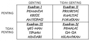 Stephen R. Covey, A. Roger Merril, Rebecca R. Merill, First Thing First (New York: Simon & Schuster, 1994). Terjemahan Indonesia: First Thing First: Dahulukan yang Utama (Jakarta: Gramedia Pustaka Utama, 1995).