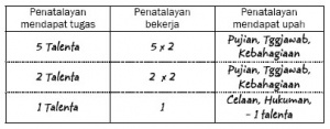 KELIRU: Kita berpikir bahwa jika kita tidak bekerja bagi Tuhan dengan apa yang telah diberikan-Nya untuk kita kelola, hal terburuk yang mungkin terjadi adalah tidak mendapat upah. | BENAR: Jika kita tidak bekerja bagi Tuhan dengan apa yang telah diberikan-Nya untuk kita kelola, hal terburuk yang mungkin terjadi adalah menderita kerugian. |