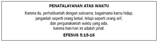 Karena itu, perhatikanlah dengan saksama, bagaimana kamu hidup, janganlah seperti orang bebal, tetapi seperti orang arif, dan pergunakanlah waktu yang ada, karena hari-hari ini adalah jahat. (EFESUS 5:15-16 )