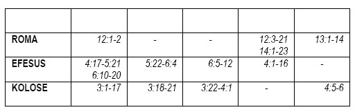 Perjanjian Baru menghubungkan setiap aspek kehidupan sebagai ibadah kepada Tuhan. Jadi, tidak ada tingkatan di mana aspek kehidupan tertentu merupakan hal lebih rohani daripada aspek kehidupan yang lain. Dalam surat-surat Paulus dan surat-surat kiriman yang lain, pengajaran-pengajaran yang disampaikan selalu diikuti penerapannya dalam beberapa bidang utama kehidupan: