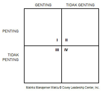 Kita selalu berada di dalam kebingungan antara tugas yang mendesak dan tugas yang penting. Persoalannya adalah bahwa pada umumnya tugas yang penting tidak perlu segera dikerjakan. Jam-jam tambahan untuk berdoa dan pemahaman Alkitab, mengunjungi teman-teman non-Kristen serta mempelajari sebuah buku penting: proyek-proyek tersebut bisa ditunda. Tetapi tugas-tugas yang mendesak membutuhkan penyelesaian cepat, sehingga mengakibatkan tekanan yang tak habis- habisnya setiap hari dan setiap jam.